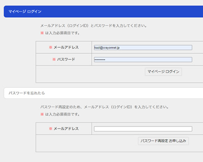 なお、パスワードを忘れてしまった場合はログインページ下部の「パスワードを忘れたら」欄にメールアドレスを入力して「パスワード再設定お申し込み」をクリックしてください。パスワード再設定用のメールが送付されますので、メール内のリンクをクリックしてパスワードを再設定してください。